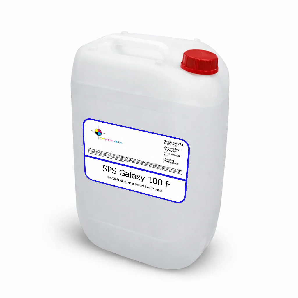 SPS Galaxy 100 F — це ефективний, фільтрований змивний засіб для традиційних фарб, призначений для миття валиків і офсетних полотен у coldset-друці. Продукт може застосовуватися як вручну, так і в автоматичних мийних системах, що полегшує його адаптацію до різних робочих процесів у друкарні. Завдяки низькій леткості та високій температурі спалаху він сприяє економному використанню та допомагає підтримувати більш комфортні умови праці. Додатковою перевагою є безпечне застосування для всіх типів друкарських пластин.