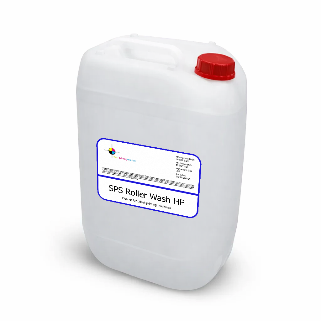 SPS Roller Wash HF — це універсальний засіб для щоденного очищення елементів друкарських машин в офсетній технології. Його розроблено для ефективного видалення залишків фарби та експлуатаційних забруднень з офсетних полотен, валиків та інших робочих поверхонь. Ретельно підібрана формула сприяє ефективному процесу миття, допомагає підтримувати чистоту фарбового і зволожувального апаратів та забезпечує стабільну роботу машини. Це практичне рішення для друкарень, які шукають ефективний і економічний засіб для щоденного використання.