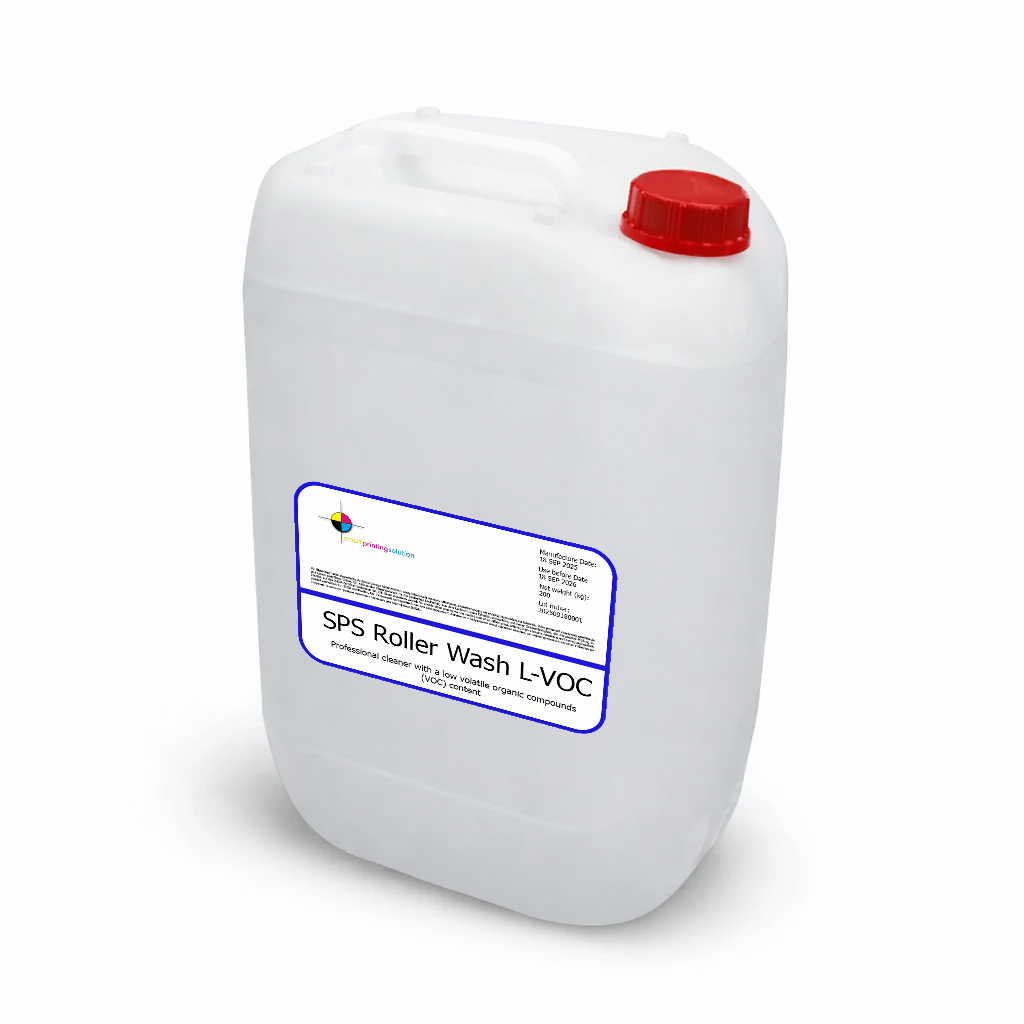 SPS Roller Wash L-VOC — це професійний змивний засіб для промислового застосування в друкарні, призначений для використання в процесі друку. Продукт має форму рідини синього кольору з характерним запахом, а його формула ґрунтується переважно на вуглеводневій фракції C12–C15 з додаванням спиртів C9–C11. Завдяки низькій в’язкості та стабільності за нормальних умов використання він може застосовуватися як робочий засіб у поліграфічному середовищі.
